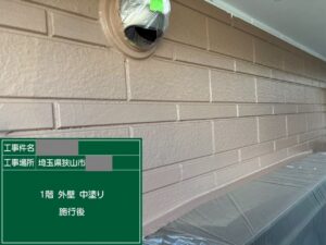 前回の外壁塗装の様子については「埼玉県狭山市 T様邸 外壁塗装工事 下塗り・中塗り・上塗りそれぞれの役割とは?」にてレポートしておりますので、ぜひご覧ください。